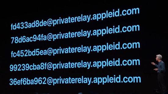 据苹果高管称,这项新功能将生成一个由苹果托管的随机电子邮件地址,该地址能够接收来自该应用程序的所有通信和通知,并将电子邮件转发到用户的合法电子邮件地址。